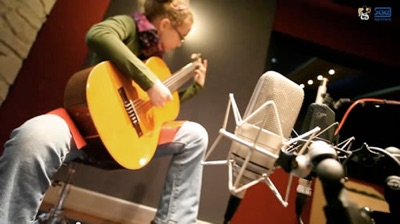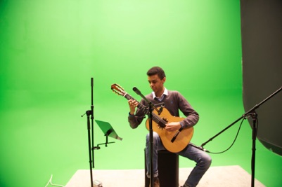 Es wurde zuvor alles bis ins letzte Detail geplant. Die Auswahl der Mikrofone und der Vorverstärker, die zu verwendenden Mikrofonverfahren, sowie das Einrichten des Aufnahmemediums und des Mischpultes gehörten zu den Aufgaben, die vorab fachgerecht erledigt werden mussten. Das studentische Film-Team setzte modernste, hochwertige Kameras von RED-Digital und Sony ein. Zudem wurden jede Menge Lichtstative mit Filmleuchten aufgebaut. Somit befand sich in den Aufnahmeräumen ein dichter Dschungel von technischen Geräten, ganz zu schweigen von den vielen, schwer beschäftigten Personen, die quasi alle wie die Fliegen am Set umher kreisten. In Mitten dieses Geschehens befanden sich die Hauptpersonen des Tages: unsere jungen Gitarristinnen und Gitarristen, das erste Mal in einem solchen Studiokomplex, unter einer Menge fremder Leute! Was sollte daraus werden? Doch umso erstaunlicher war zu beobachten, mit welcher grandiosen Gelassenheit und Ruhe die jungen „Saitenzupfer“ ans Werk gingen. Als es nach dem Soundcheck hieß: „ACHTUNG AUFNAHME!“, spielten unsere Gewinnerinnen und Gewinner äußerst ungezwungen, voll konzentriert, nahezu wie die Profis, dass von ihnen so fleißig geübte und erlernte Musikstück. Respekt! Jeder Take wurde gemeinsam präzise und sehr kritisch angehört und manchmal äußerte der junge Künstler mit dem Brustton der Überzeugung: „Das kann ich noch besser!“. Also, schnell zurück in den Aufnahmeraum, um das Instrument für einen möglichst fehlerfreien Take nochmals erklingen zu lassen. Nachdem alles passte, war die Arbeit aber noch längst nicht verrichtet.